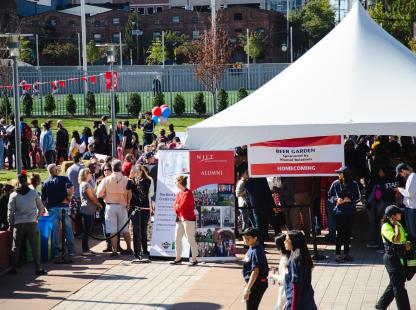 Celebrate Oktoberfest-style with beer, non-alcoholic drinks, and snacks. Dedicated areas for affinity groups, including the Black Alumni Society, HLLC, Golden Highlanders, and Greek Life.