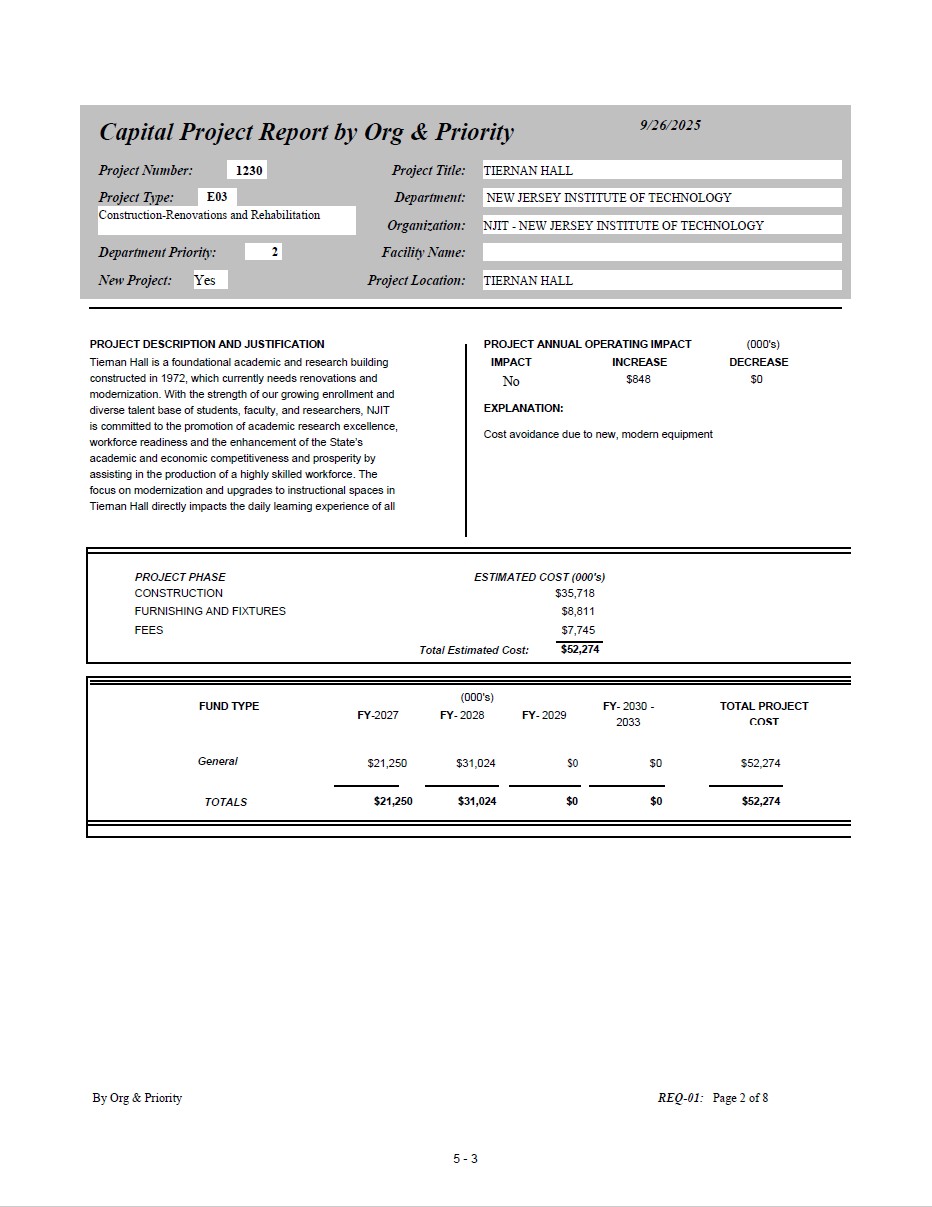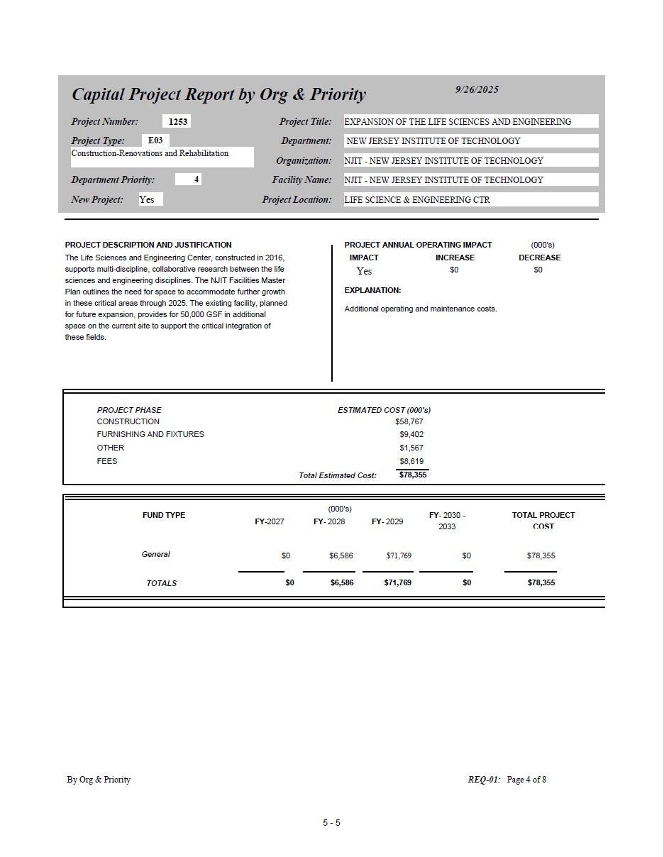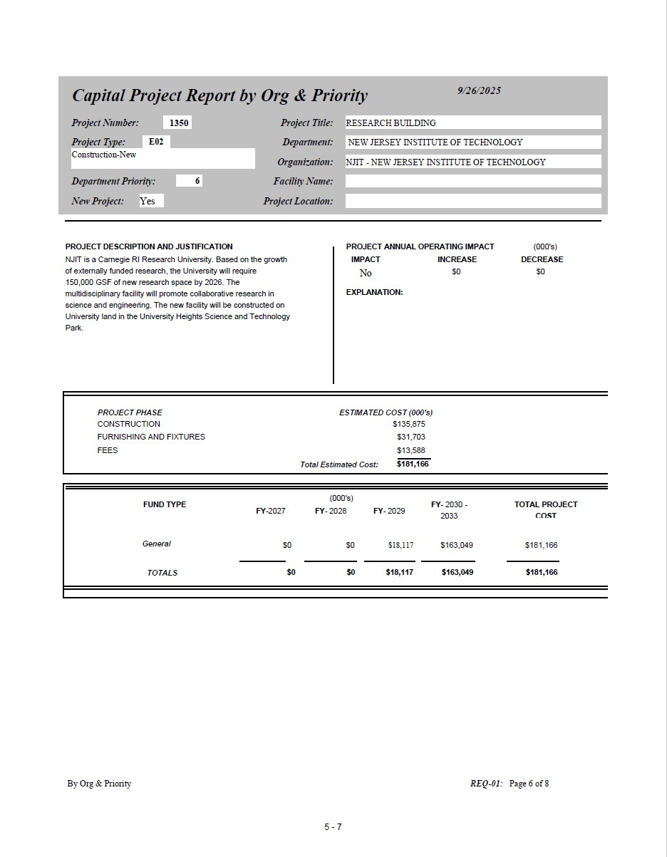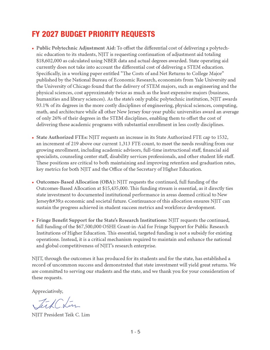 - Preventing Research Erosion: The failure to maintain this appropriation would immediately jeopardize NJIT's ability to compete for external funding, leading to two critical adverse outcomes: