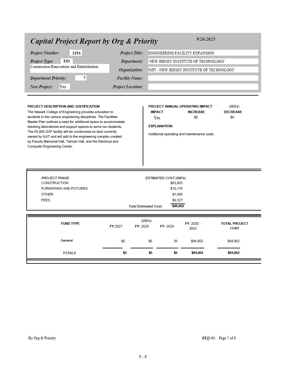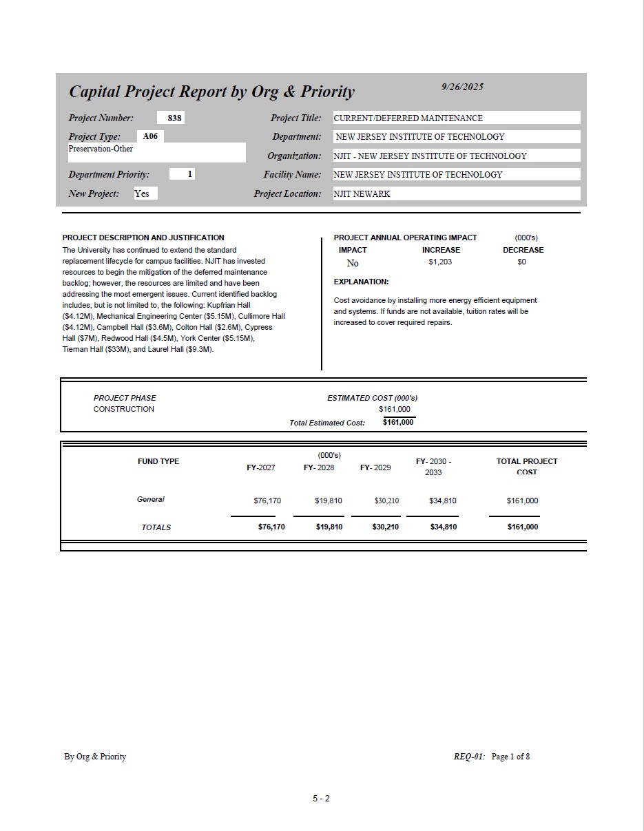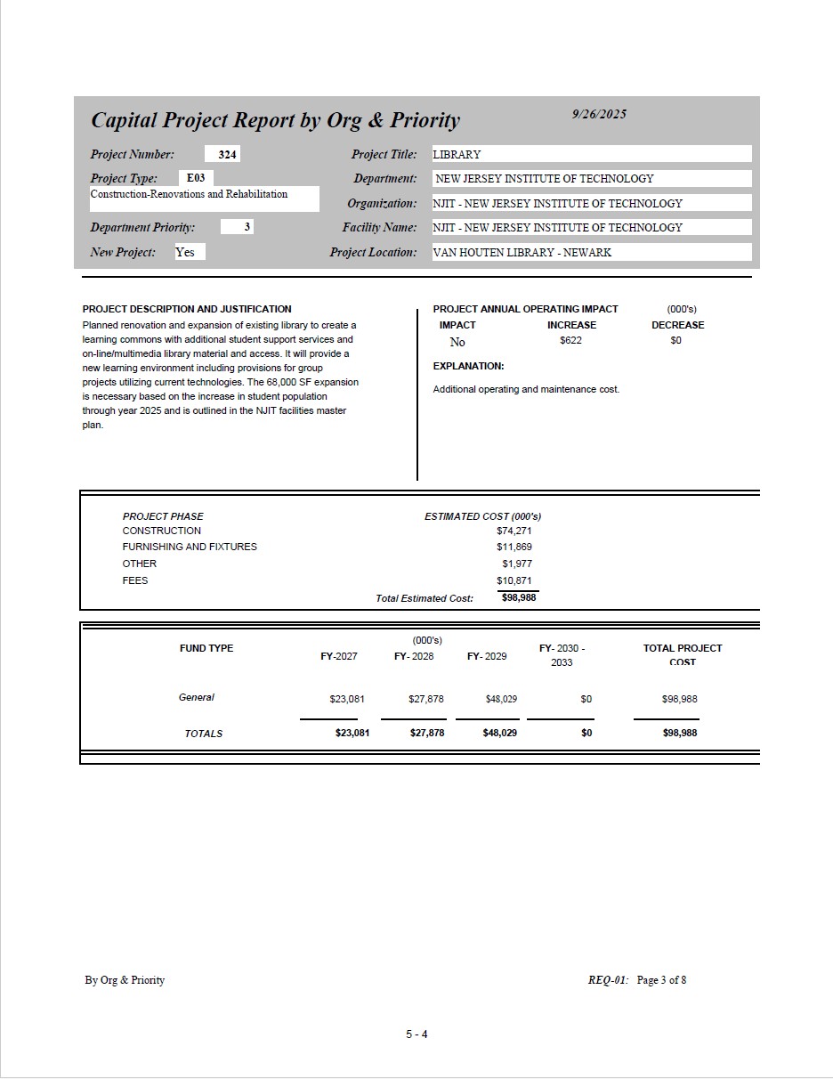 - Preventing Research Erosion: The failure to maintain this appropriation would immediately jeopardize NJIT's ability to compete for external funding, leading to two critical adverse outcomes:
