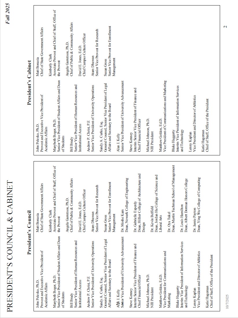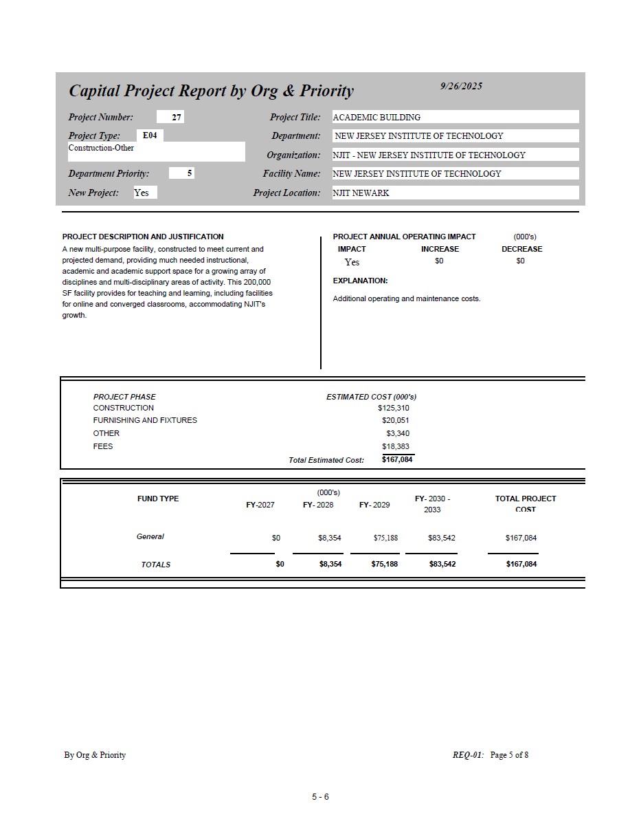 Our FY27 budget request includes 219 additional FTEs. Of this amount, 165 FTEs are needed in the current fiscal year to account for existing employees and anticipated hires necessary to meet the teaching capacity of current enrollment and to provide improved support services for our evolving student body, including additional academic advisors, full-time instructional staff, financial aid specialists, counseling center staff, disability services professionals, and other student life staff. These positions are crucial to both maintaining and improving retention and graduation rates, key metrics for both NJIT and the Office of the Secretary of Higher Education.