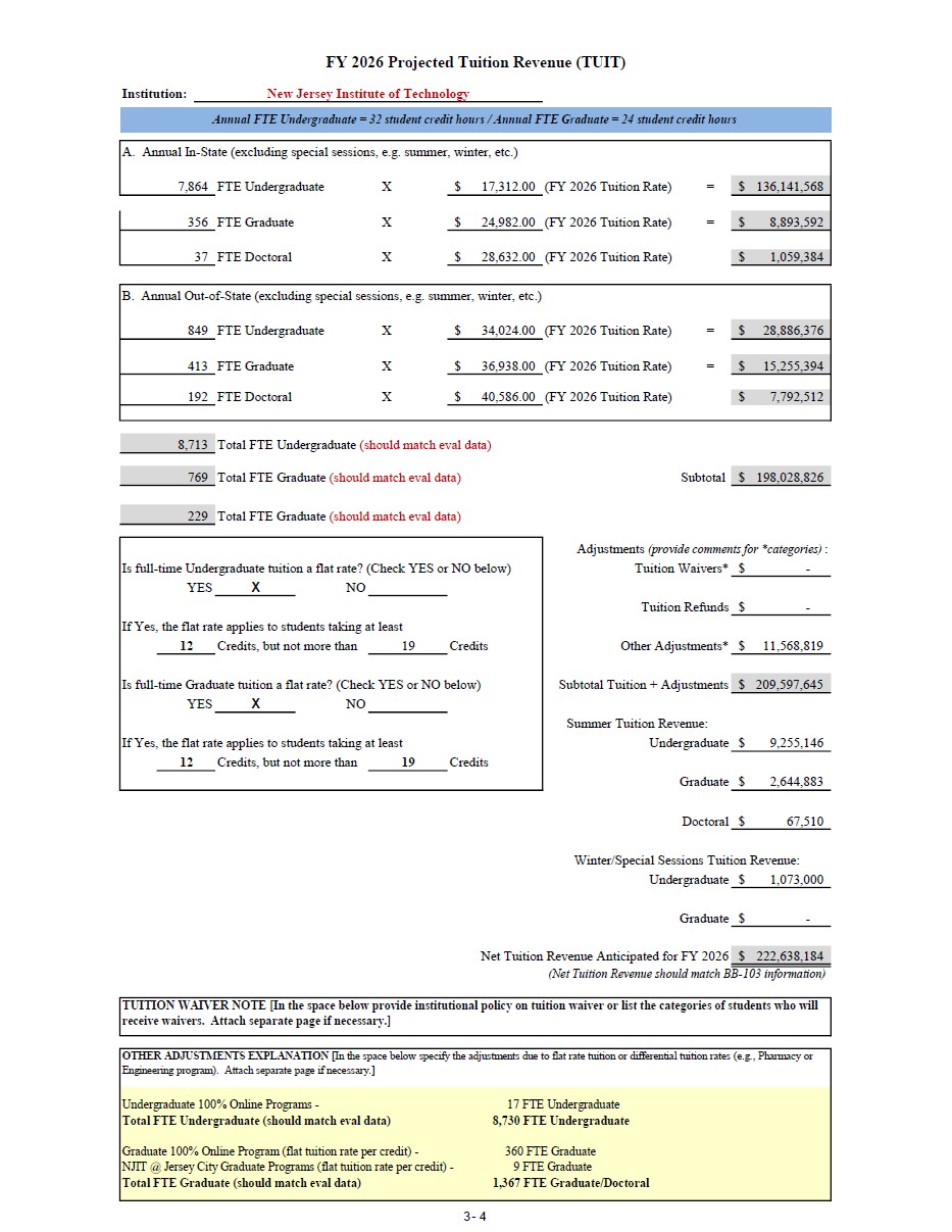- Methodology for Estimating NJIT’s Adjustment Aid: FY27 Budget Request