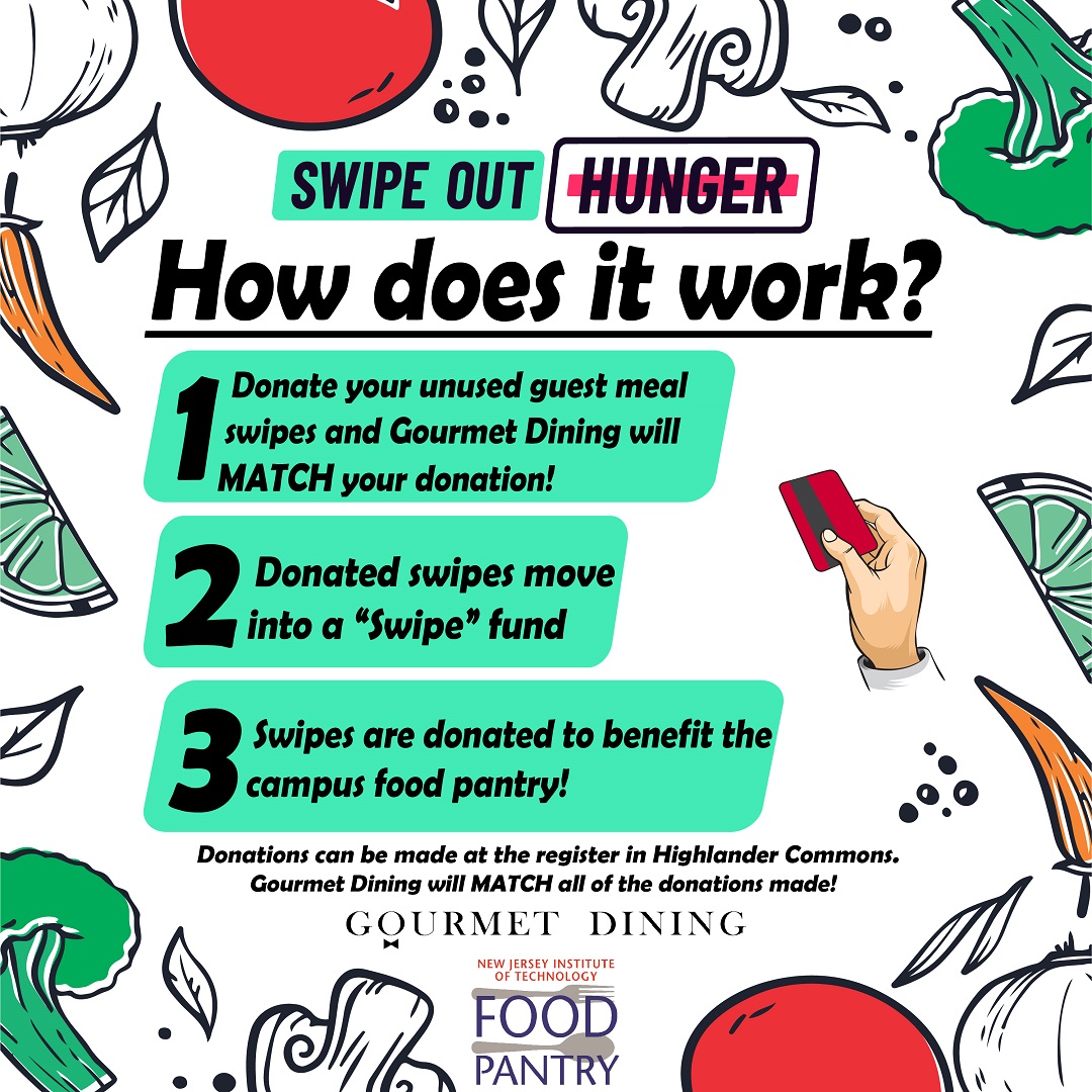 Students who are facing food insecurity may apply for the Swipe Out Hunger program by contacting the foodpantry@njit.edu email address