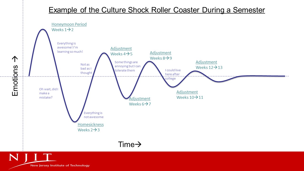 Sometimes this can be overwhelming by yourself, and you need help. Take advantage of any services that your program or host university offers to help get through this culture shock. You also have familiar NJIT services to help you with this process.